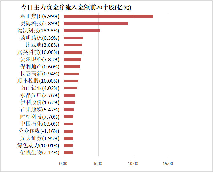 5、君正集团主力资金净流入12.83亿元居首