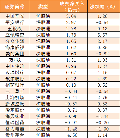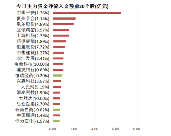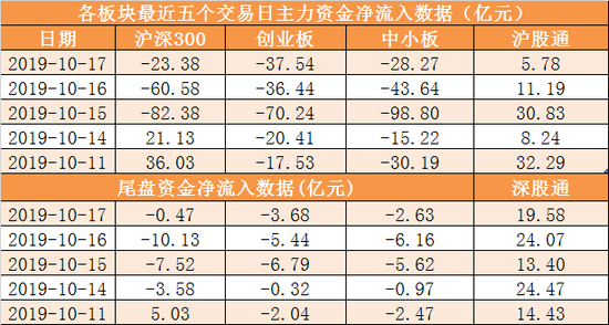 沪深300今日主力资金净流出23.38亿元,创业板净流出37.54亿元,中小板净流出28.27亿元。沪股通净流入5.78亿元,深股通净流入19.58亿元(本文中沪股通、深股通净流入额以当日已用额度来计,与成交净买入额略有差异,但表示的意义大体一致)。