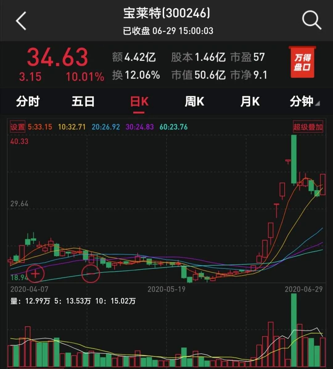 6月9日以来宝莱特股价出现大涨,6月11日至17日连续五个交易日涨停,截至6月17日收盘累计涨幅为78.12%。为此,深交所向宝莱特下发关注函,要求其披露境外经销商订单对应产品类型和销售金额及占比,以及对公司2020年业绩的影响。随后,公司股价虽有一定程度下跌,但6月29日,宝莱特再次收获涨停板。