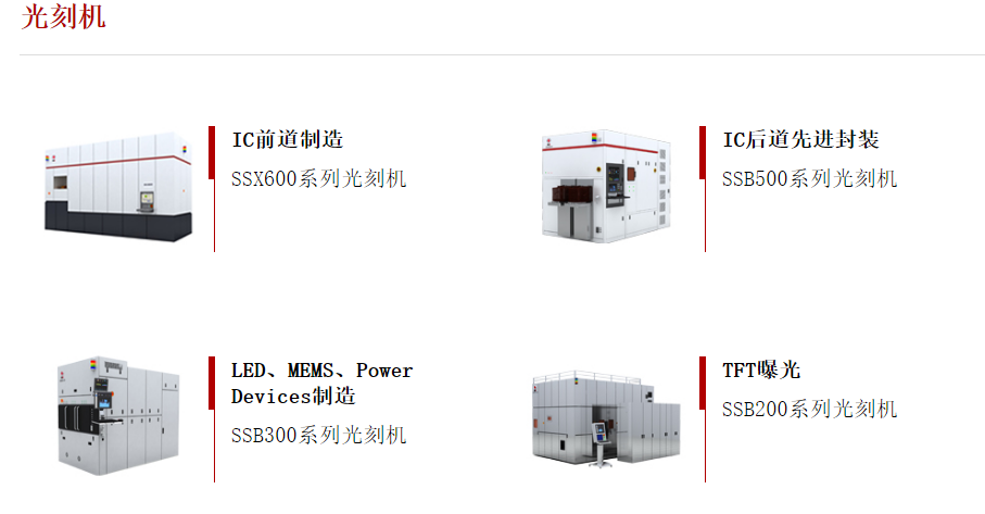 根据公司官网,公司目前有4个系列光刻机产品,目前所生产的600系列光刻机,已经能够满足90nm芯片生产,可用于8寸线或12寸线的大规模工业生产。