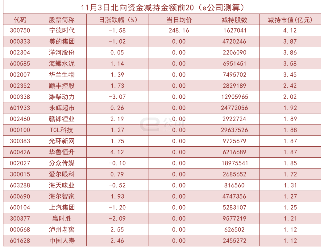 从个股来看,招商银行、中国中免、伊利股份、汇川技术等个股获北向资金增持规模居前,增持市值分别达到5.85亿元、3.12亿元、2.78亿元、2.73亿元。宁德时代、美的集团、洋河股份、海螺水泥等获北向资金减持规模居前,减持市值分别为4.12亿元、3.87亿元、3.86亿元、3.58亿元。另外,中国国贸、华能国际、宝钢股份、中国石化等连续3天获得北向资金增持。