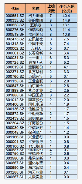 “金融1号院”根据东方财富Chioce的“沪深港通上榜十大活跃成交股”梳理显示,今年12月份以来截至12月12日,上榜个股达37只。其中,12月份以来,格力电器外资净买入额超过40亿元,位列外资净买入额之首。