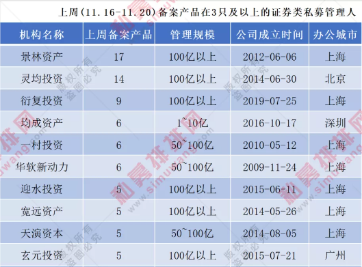 从私募备案产品情况来看,上周,百亿级私募景林投资备案产品17只,另外两家百亿级私募灵均投资、衍复投资也分别备案了14只、9只产品。