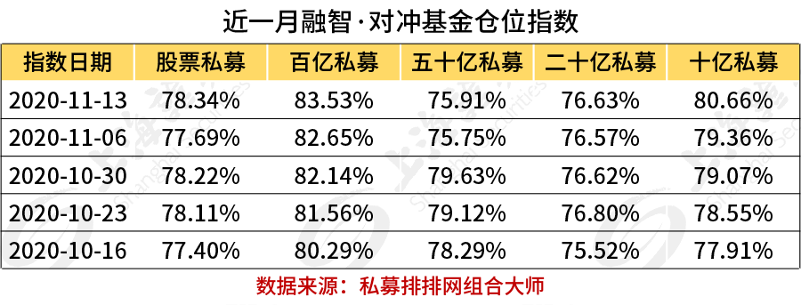 股票私募仓位继续提升。私募排排网最新数据显示,截至11月13日,股票私募仓位为78.34%,创出年内新高。具体来看,58.96%的股票私募仓位超过八成,27.86%的股票私募仓位介于五成至八成之间。