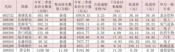 上述今年二季度获得养老金新进增持的9只个股中,有8只个股成为二季度养老金新进品种,养老金新进持有燕塘乳业503.66万股居首,长海股份、思源电气、华润微、普门科技等4只个股本期养老金新进数量也均在100万股以上,旭升股份、乐鑫科技、华峰测控等3只个股在此期间也获得养老金的青睐。此外,截至今年二季度末,养老金继续对苏交科进行加仓操作,增持数量为11.69万股,增持后持股数量达到1100万股。