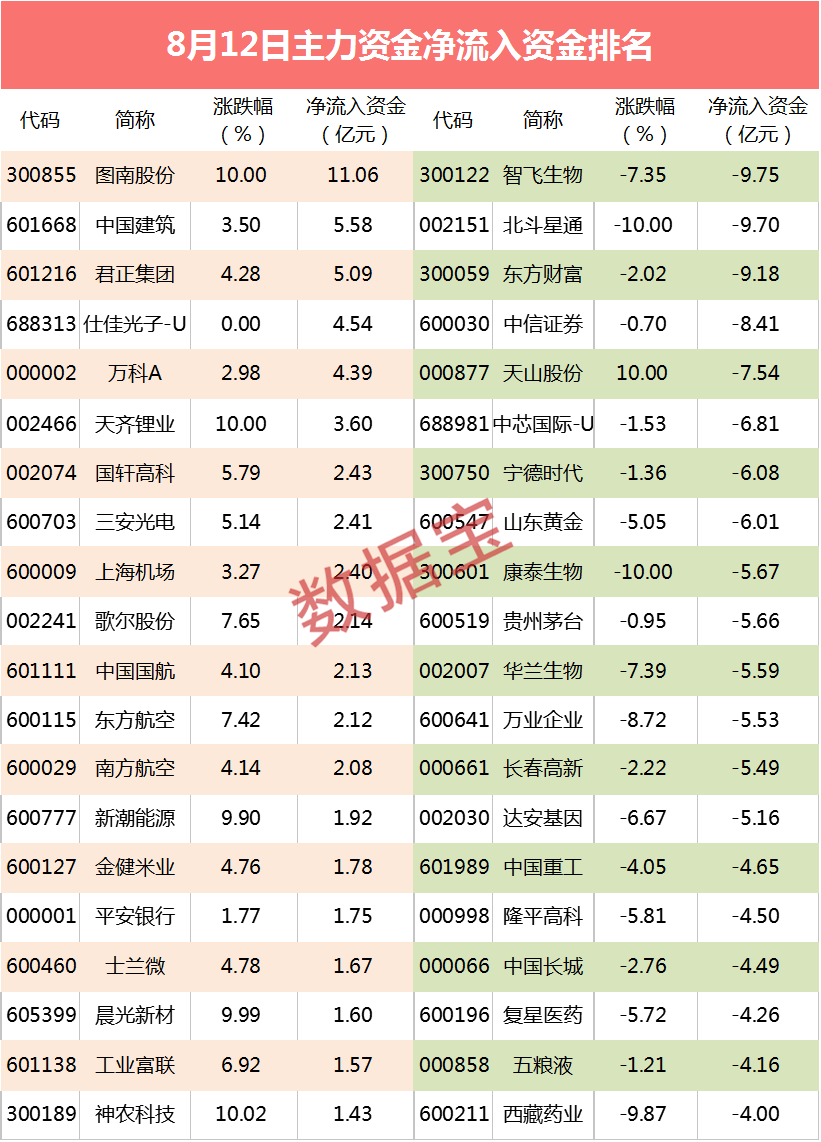 次新股图南股份资金流入居首,净流入11亿元,股价今日首次打开涨停,盘中探底回升,尾盘再度封住涨停。