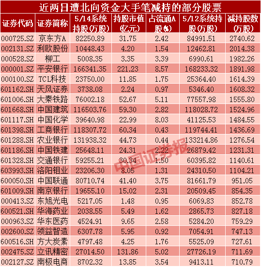 131股遭北向资金大手笔减持 银行业最为集中
