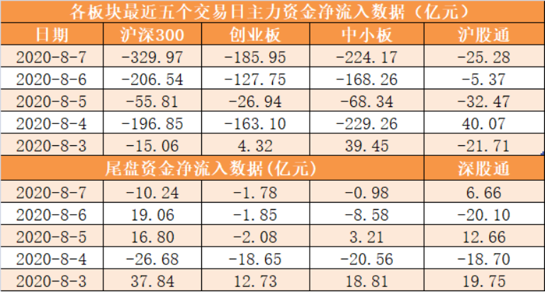 本周两市主力资金累计净流出2438.58 亿元。其中周五(8月7日)主力资金开盘净流出532.99亿元,尾盘净流出10.02亿元,全天净流出921.95亿元。