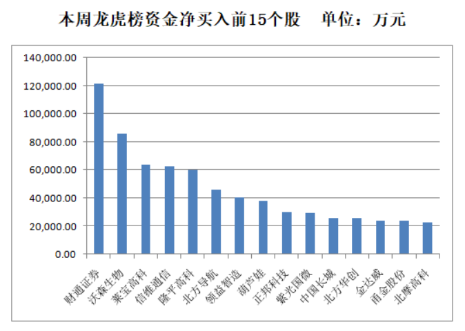 个股龙虎榜净买入金额居前的15只个股分别为:
