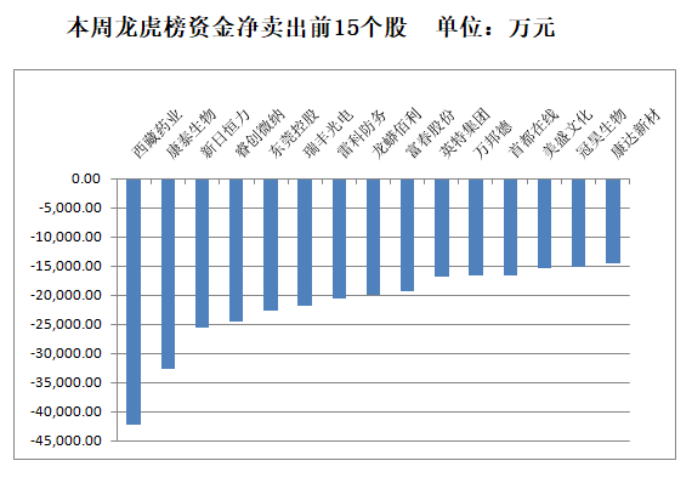 个股龙虎榜净卖出金额居前的15只个股分别为:
