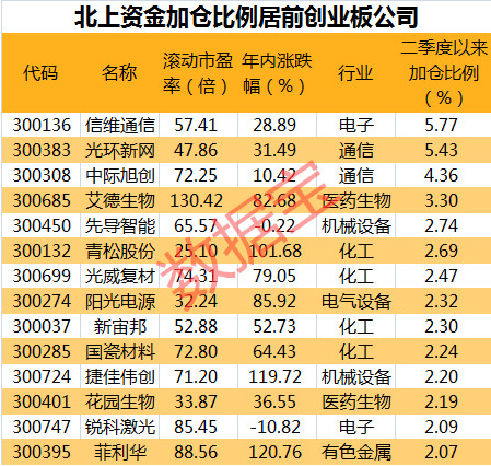 北上资金加仓这些创业板股票 14股获加仓比例超2%