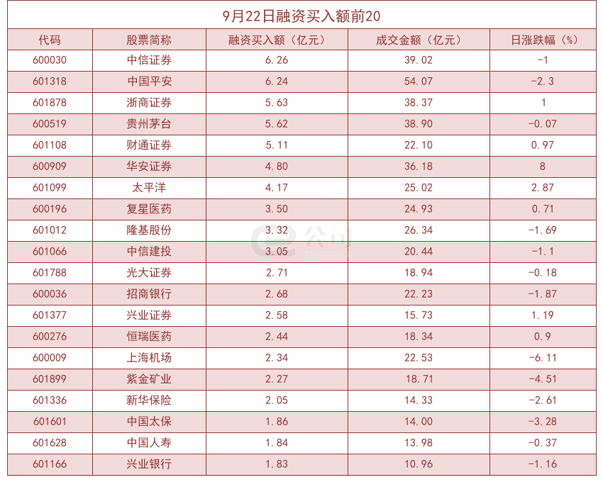 从融资资金买入金额来看,共有52只个股买入金额超亿元,其中中信证券(6.26亿元)、中国平安(6.24亿元)、浙商证券(5.63亿元)居前三位。