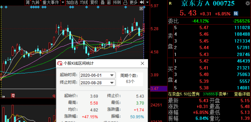 自6月起,京东方A股价稳步上行,涨幅近50%。