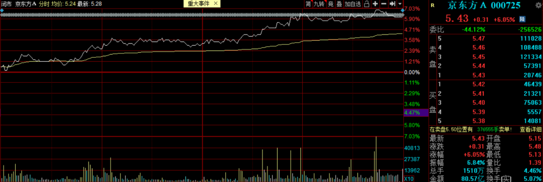 截至收盘,京东方A收涨6.05%,获北向资金爆买9.81亿。
