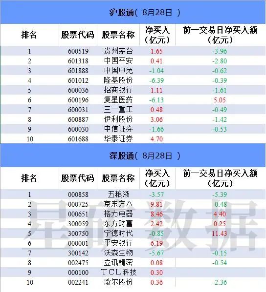 从个股成交上,京东方A净买入9.81亿,格力电器净买入8.46亿,平安银行净买入6.19亿,华泰证券净买入4.70亿。隆基股份净卖出6.39亿元,复星医药净卖出6.13亿元;沃森生物净卖出5.67亿元,五粮液净卖出3.57亿元。