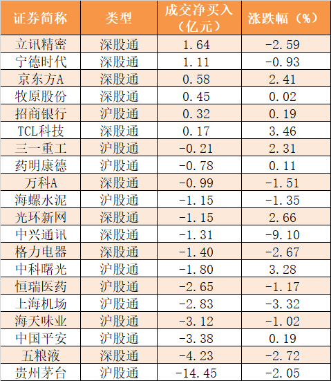 沪深300今日主力资金净流出90.02亿元,创业板净流出27.44亿元,中小板净流出59.58亿元。沪股通净流出50.42亿元,深股通净流出21亿元(本文中沪股通、深股通净流入额以当日已用额度来计,与成交净买入额略有差异,但表示的意义大体一致)。
