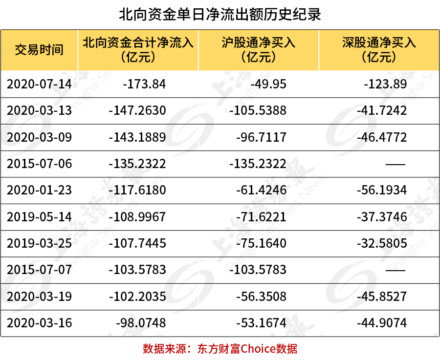 该数据创互联互通以来北向资金单日净卖出额的新高。上一次北向资金出现大额净流出是在今年的3月13日,北向资金当天净流出147.26亿元。