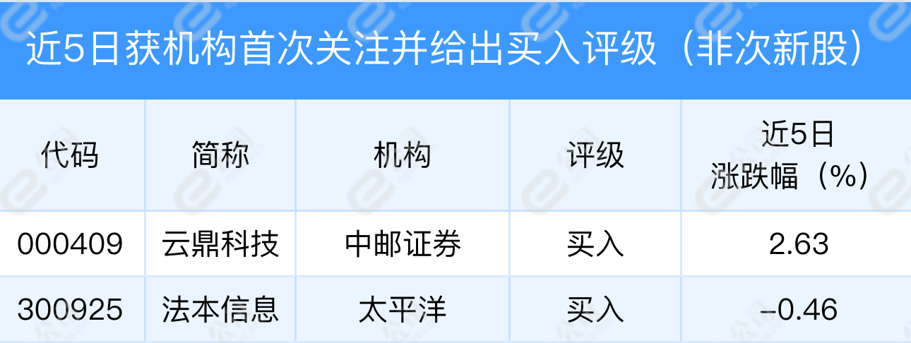 云鼎科技、法本信息等在5日内获得机构首次关注并给出买入评级。