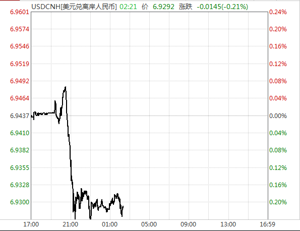 今日离岸人民币盘中异动,短期迅速拉升逾300个基点,在岸人民币对美元日内涨幅也达到182个基点。