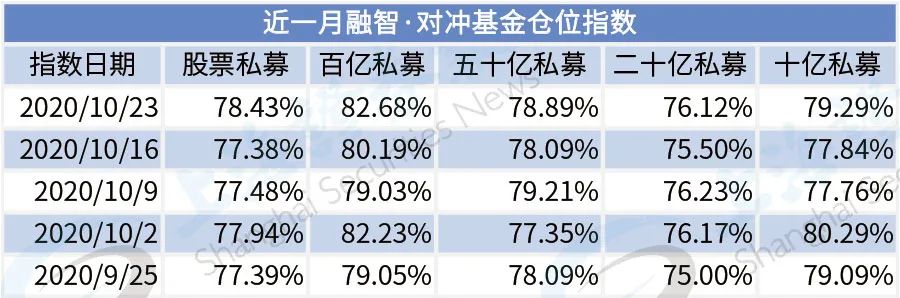 数据显示,国庆假期结束以来,股票私募整体仓位指数变化不大,但百亿级私募仓位指数已经连续两周上升,提升了3.65个百分点,其中63.1%的百亿级私募仓位超过八成。