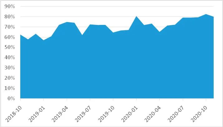 私募排排网数据显示,截至10月底,股票多头策略型私募基金的平均仓位为80%,相较于上月有小幅下滑,但仍维持在高位水平。