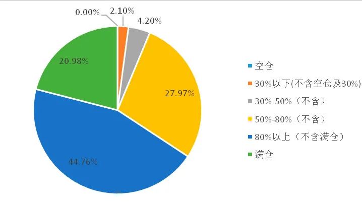 从具体仓位分布来看,中高仓位的私募基金数量维持高位,仓位在五成及以上的私募基金占比达93.71%。