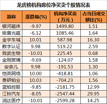 我武生物今日跌停。该股盘后数据显示,9个机构出现在龙虎榜单上,其中,四个机构席位买入6154万元;五个席位卖出5928万元。