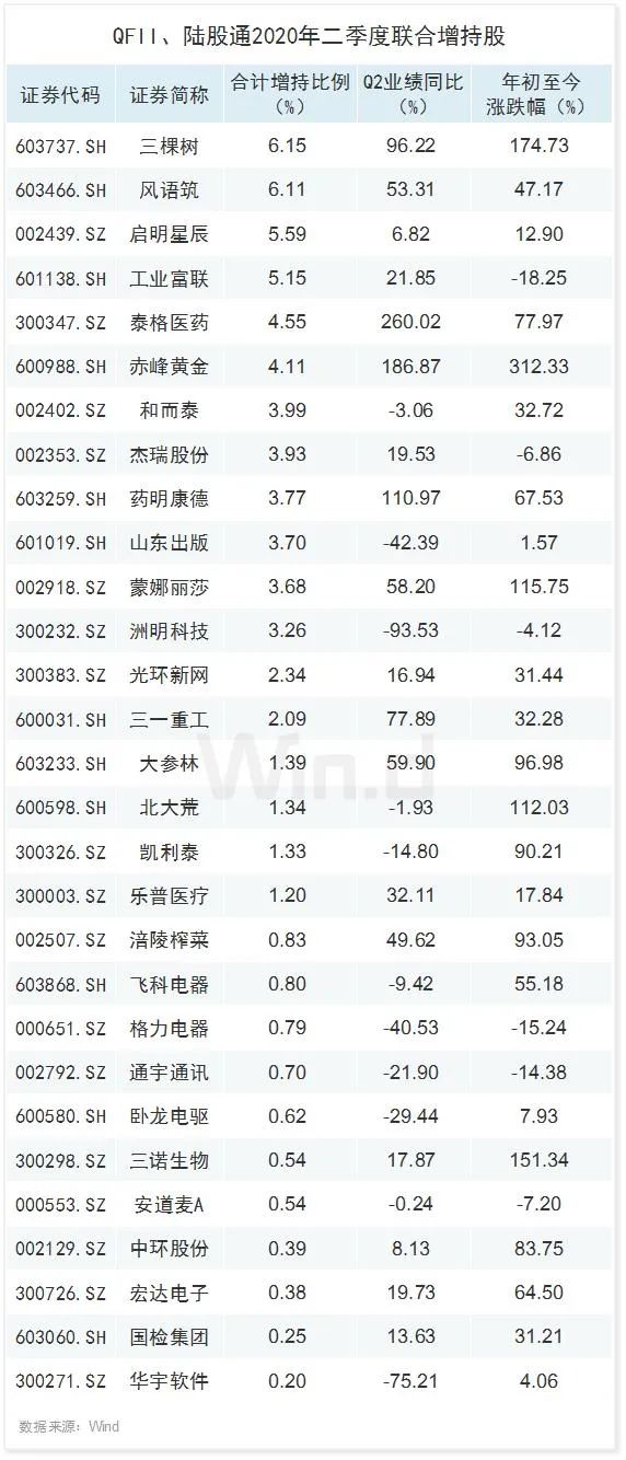 从业绩来看,外资联合增持的29股,有18股今年第二季度净利润实现正增长,占比62%,其中泰格医药、赤峰黄金、药明康德三只个股二季度净利润同比倍增。