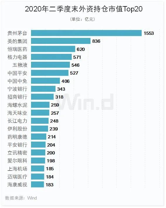 Wind统计显示,今年二季度,有357家公司获QFII持仓,再加上陆股通的持股市值,共有32股外资最新持股市值超百亿。