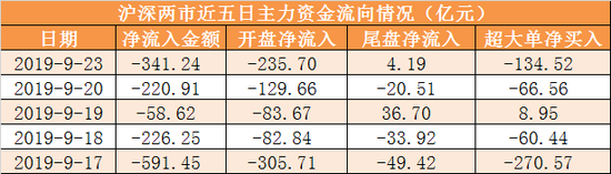 今日沪深两市主力资金开盘净流出235.7亿元,尾盘净流入4.19亿元,两市全天资金净流出341.24亿元。