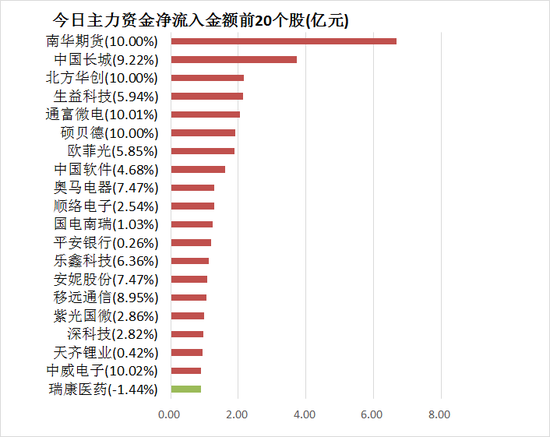 5、南华期货主力资金净流入6.69亿元居首