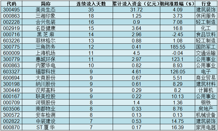 主力资金连续流入个股