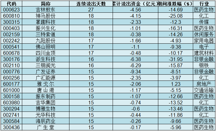 主力资金连续流出个股