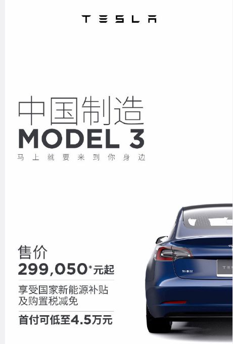 1月3日,特斯拉高调宣布,中国制造Model 3首批新车即将交付,最终售价将降至29.905万元。当天中午,特斯拉官方微博还放出一张宣传海报,确认了国产特斯拉降价的消息。