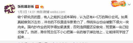 值得注意的是,随着特斯拉降价消息发布,汽车行业人士频频发出惊呼:“狼来了!”