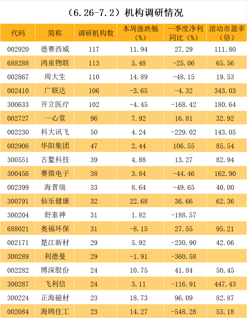 近一周以来机构调研个股数量有80多只,德赛西威成为调研机构数量最多的股票。