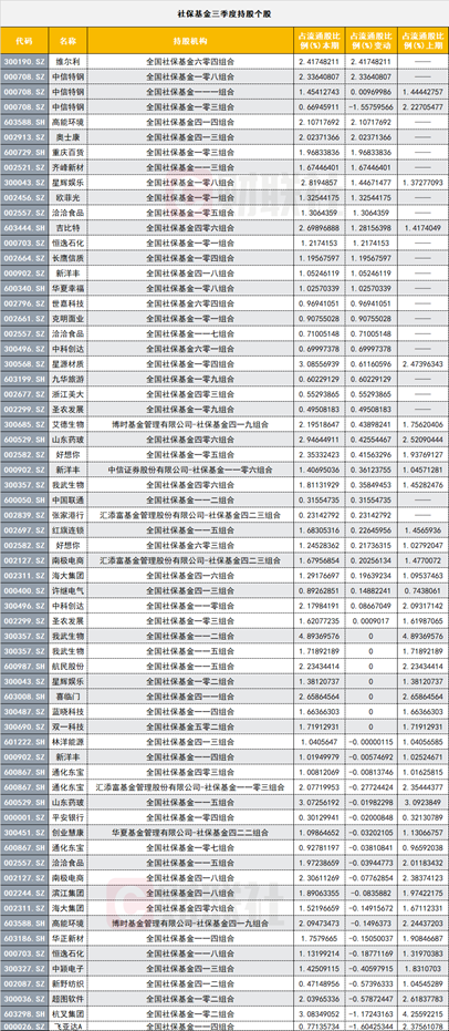 截至10月21日,已披露上市公司的三季报显示,社保基金目前持股65家。排名前五为山东药玻(6.01%)、我武生物(4.89%)、星源材质(3.09)、杭叉集团(3.08%)、星辉娱乐(2.82%)。