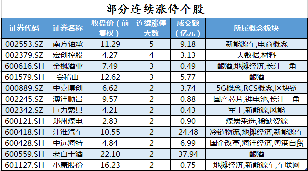 从行业板块方面看,煤炭采选、有色金属、酿酒、券商、石油行业板块涨幅靠前;旅游酒店、民航机场、仪器仪表、文化传媒、软件服务行业板块跌幅居前。涨停个股主要集中在化工、汽车、酿酒、有色金属等行业。
