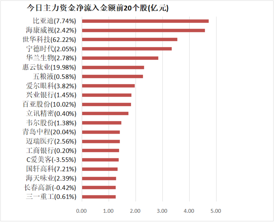 5、比亚迪主力资金净流入4.71亿元居首