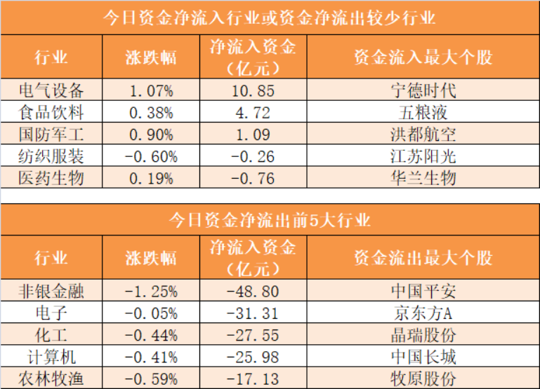 3、电气设备行业净流入10.85亿元居首