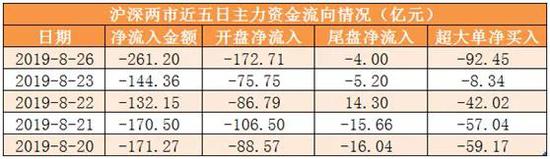 今日沪深两市主力资金开盘净流出172.71亿元,尾盘净流出4亿元,两市全天资金净流出261.20亿元。