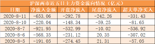 今日沪深两市主力资金开盘净流出292.78亿元,尾盘净流出242.26亿元,两市全天资金净流出653.06亿元。