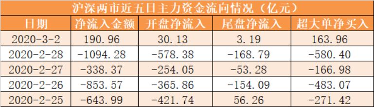 今日沪深两市主力资金开盘净流入30.13亿元,尾盘净流入3.19亿元,两市全天资金净流入190.96亿元。