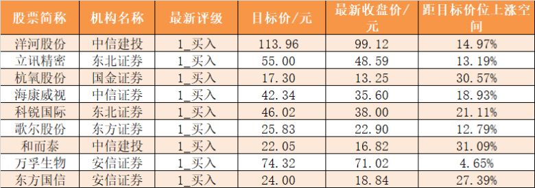 最新机构关注个股