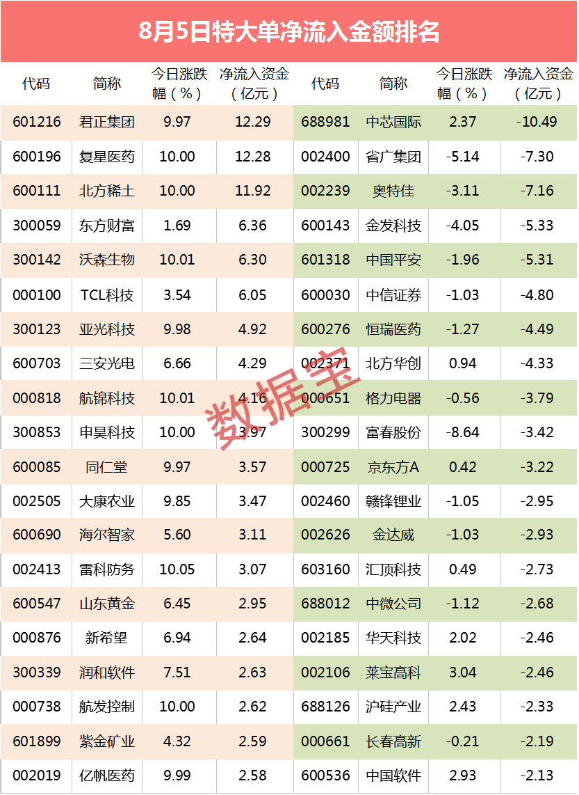 两市特大单资金净流出61.17亿元。部分疫苗股资金杀出回马枪,龙头君正集团、复星医药大单资金流入均超12亿元。盘后,复星医药宣布已开始mRNA新冠疫苗临床试验。