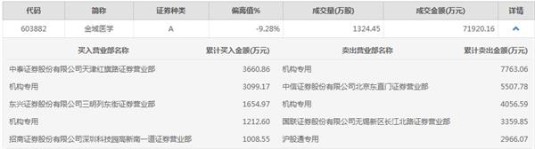 私募大佬的开溜,让不少跟风的资金也望而却步,选择落袋跑路。10月23日,金域医学早盘高开后便被大量的抛单狂砸,盘中一度触及跌停,截至当日收盘,公司股价暴跌9.71%。而盘后公司龙虎榜数据显示,有两家机构席位合计卖出11820万元,中信证券北京东直门营业部卖出5508万元,国联证券无锡长江北路营业部卖出3360万元。而在买入席位上,出现了两家机构席位,合计买入4312万元。