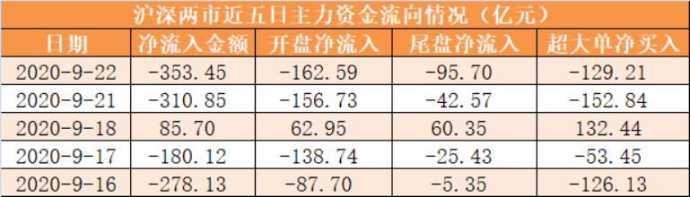 今日沪深两市主力资金开盘净流出162.59亿元,尾盘净流出95.7亿元,两市全天资金净流出353.45亿元。