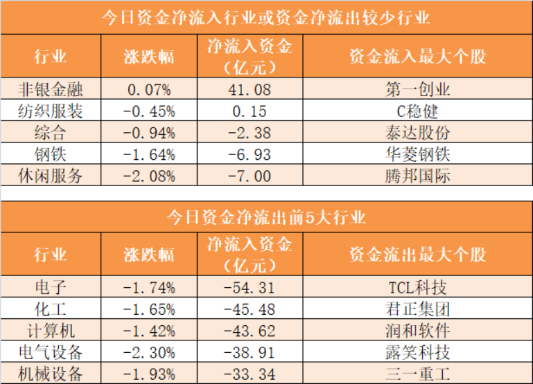 3、非银金融行业净流入41.08亿元居首