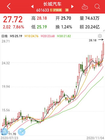 个股行情分化较大,超2500只个股下跌,跌停板上还出现了美年健康这样的大市值医药股。上涨个股不足1500只,汽车板块再度大涨,长城汽车再创历史新高,市值涨破2000亿大关。