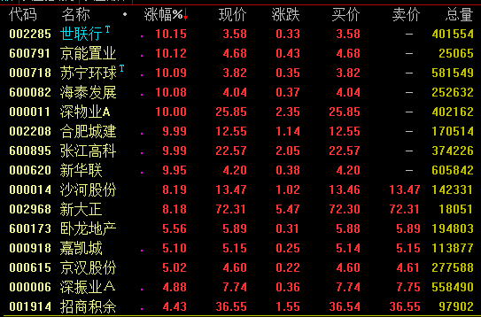 地产板块今日盘中再度走高,截至收盘,世联行、京能置业、苏宁环球、海泰发展、深物业A、合肥城建、张江高科、新华联等涨停。